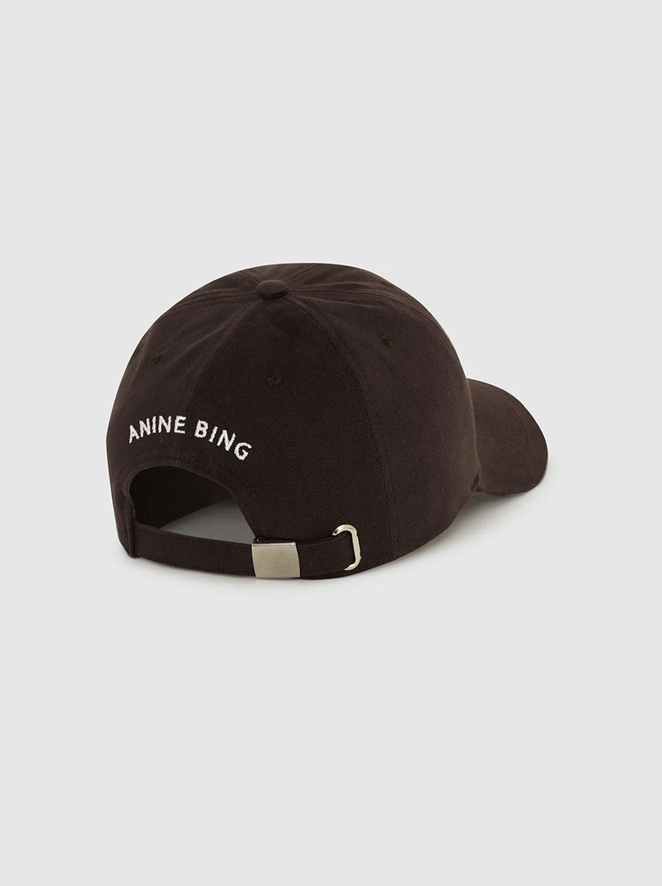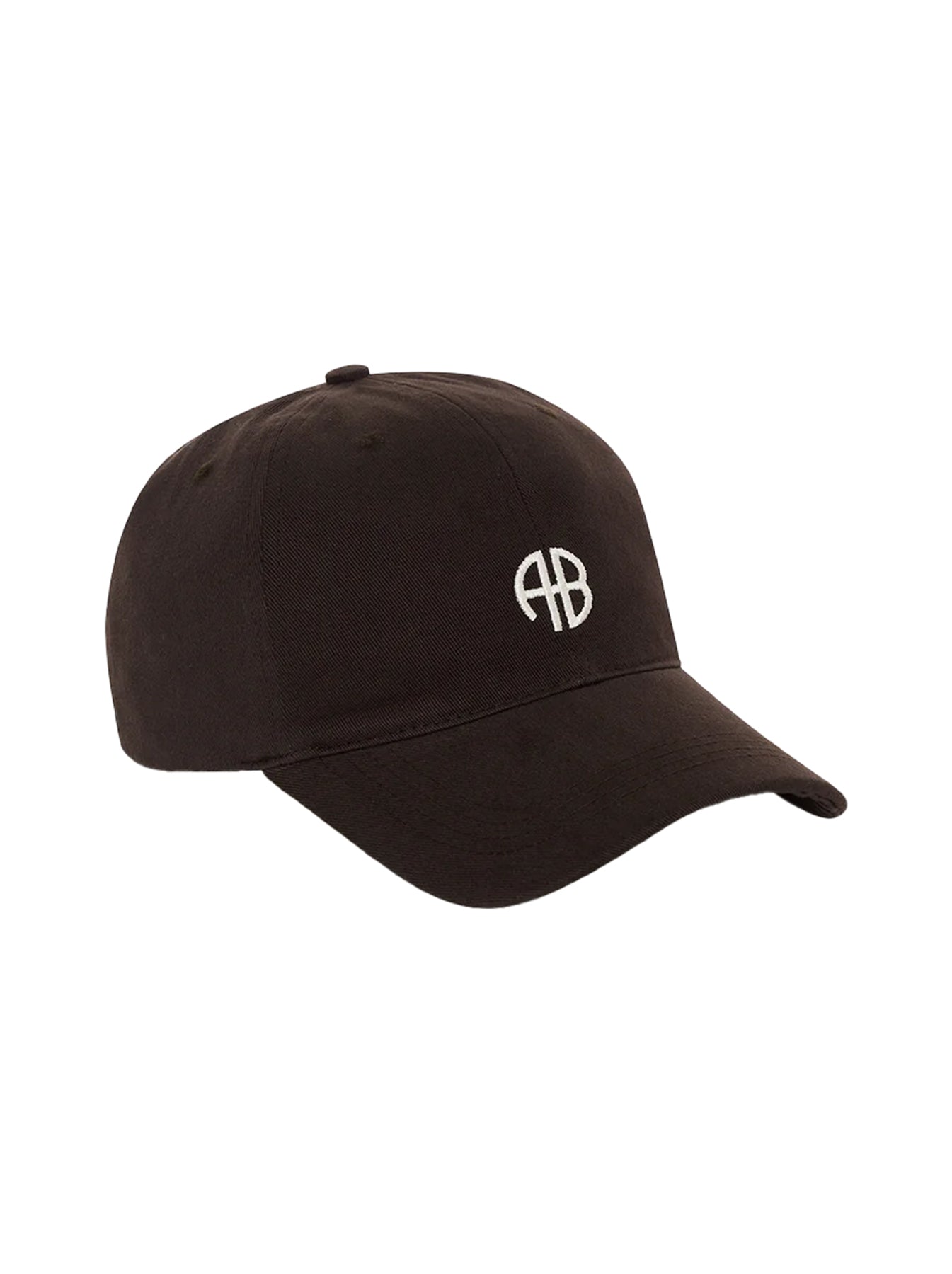 The Jeremy Baseball Cap AB is a versatile cotton-twill hat in a deep brown colour, designed for everyday wear. It includes an adjustable back strap for a customized fit and is accented with cream satin stitch embroidery on the front and back, adding a subtle "AB" branded detail.