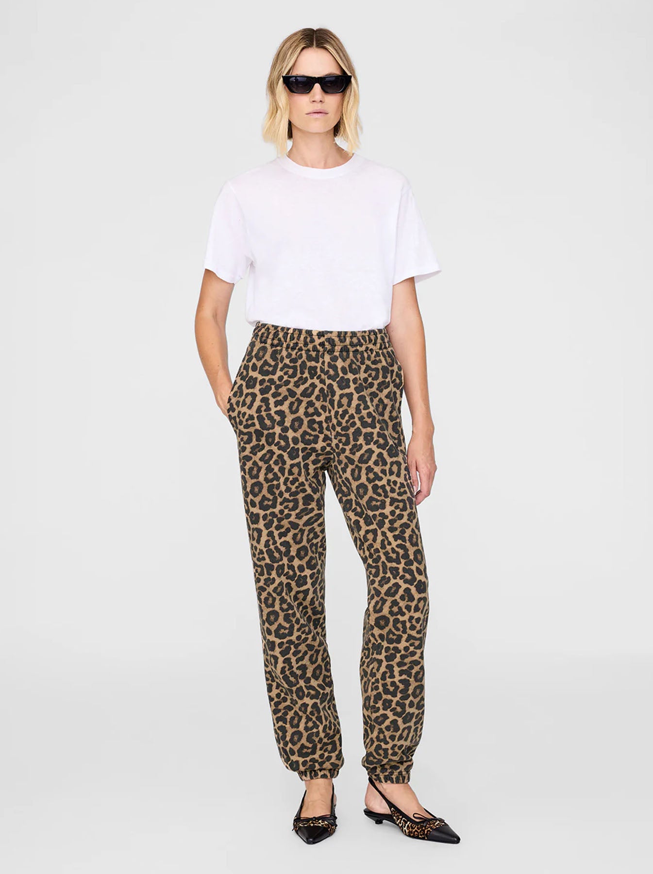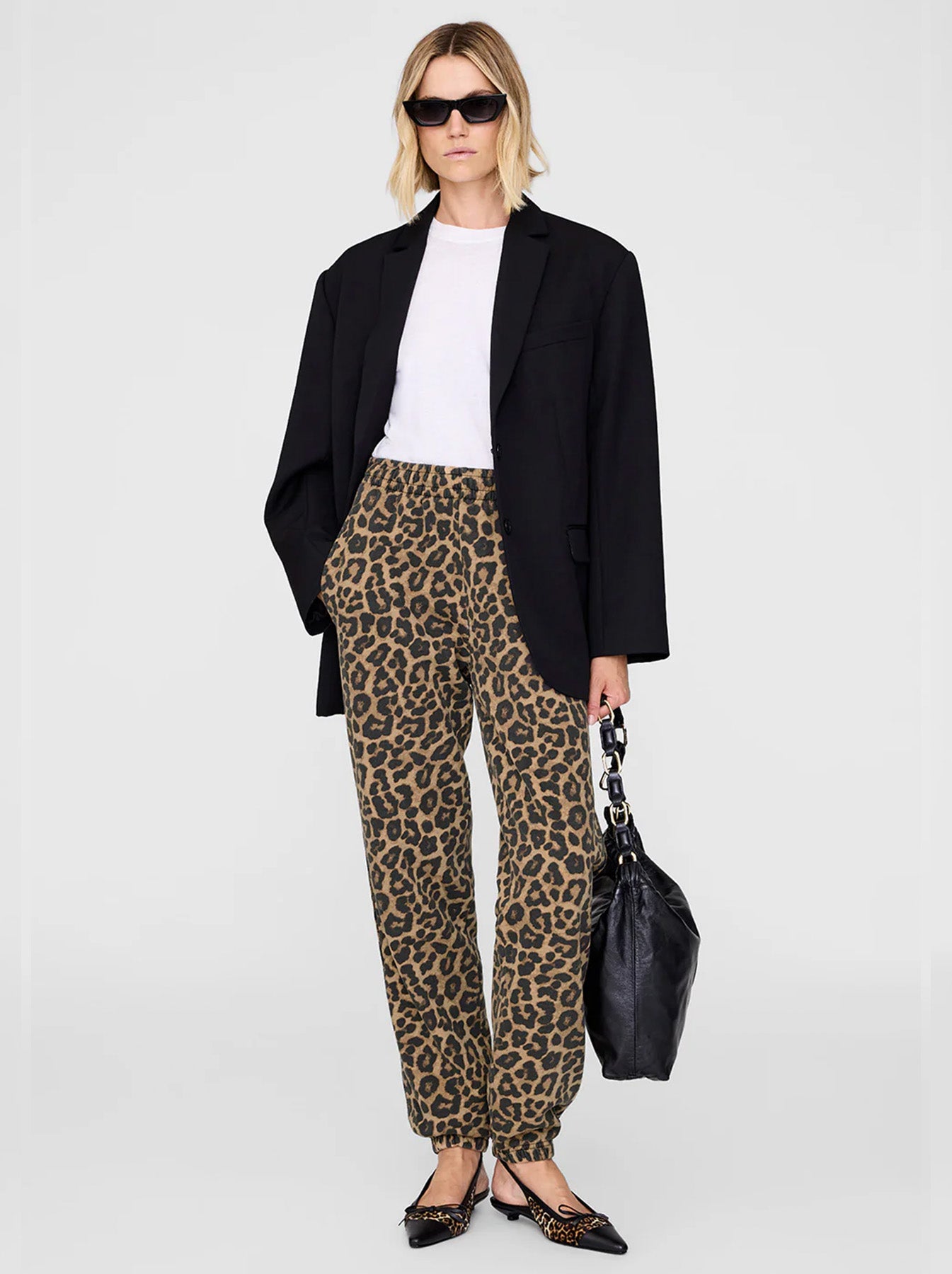- Details: Elasticated ribbed detailing at the leg openings and a concealed drawstring at the mid-rise waistband - tonal Anine Bing embroidery on the left thigh, leopard print