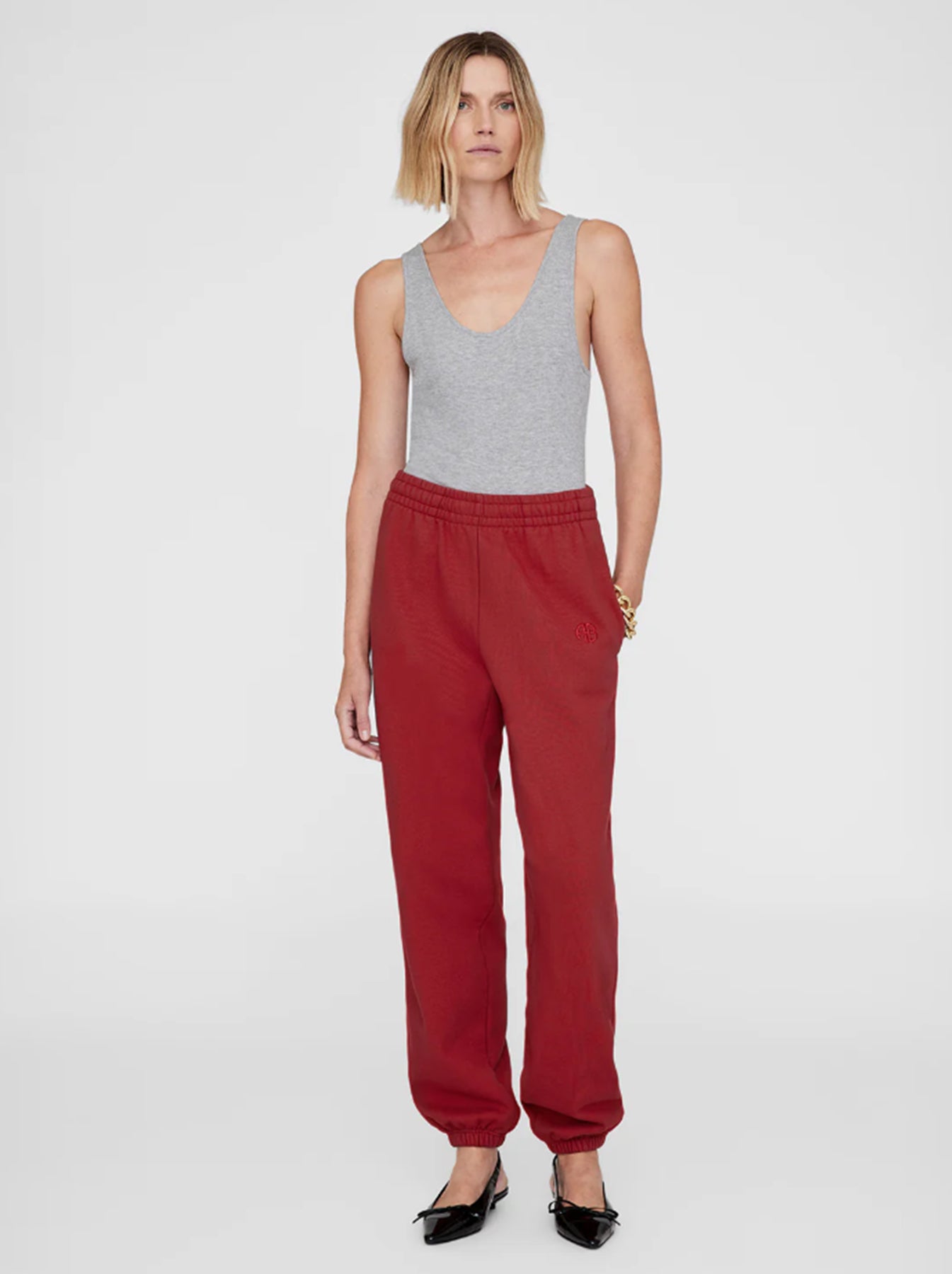 - Details: Elasticated ribbed detailing at the leg openings and a concealed drawstring at the mid-rise waistband - tonal Anine Bing embroidery on the left thigh.