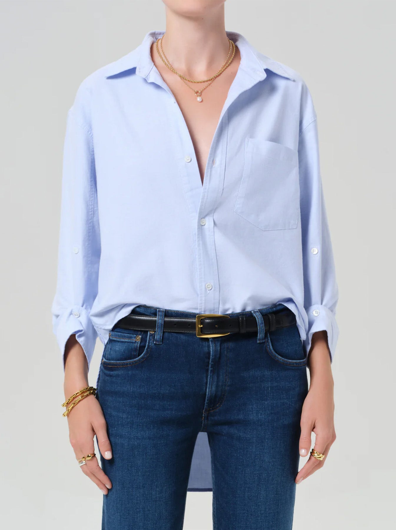 The Kayla Shirt from Citizens of Humanity, in this soft Oxford blue cotton, is a classic wardrobe investment. Easy and breathable, pair with white denims and leather sandals for an effortless summer look.
