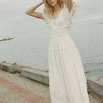 The Leanne Dress by Dôen is an effortlessly romantic style designed for warm days and easy dressing. Crafted from lightweight cotton in a soft white hue, it features a gently fitted bodice balanced by a fluid, flowing skirt. Delicate detailing and a timeless silhouette make it a versatile piece — perfect styled with sandals for day or dressed up with simple jewellery for evening.
