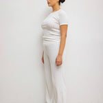 The Pointelle Tee by Leset offers a crisp silhouette with a soft, feminine twist. Made from stretchy ribbed pointelle cotton, it fits close to the body while staying light, breathable, and endlessly wearable. Scalloped edging adds a hint of charm without fuss or distraction. Team it with cargo pants, a sling bag, and cool shades for an easy, elevated street look.
