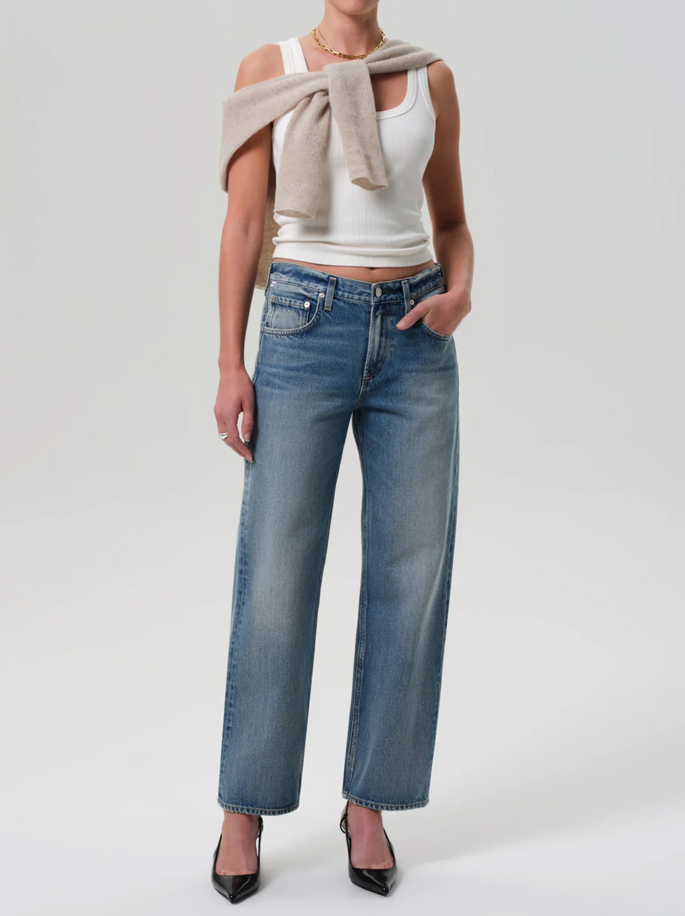 Citizens Of Humanity's ‘Lindz’ delivers a relaxed straight-leg shape with a low rise and an easy, unfussed energy. Cut from rigid regenerative cotton with a soft touch, it blends all-day comfort with a vintage sensibility. Bijou’s medium-indigo wash and gentle fading evoke the character of well-loved denim—styling perfectly with a tucked tee or a cropped jacket for a casual yet polished finish.