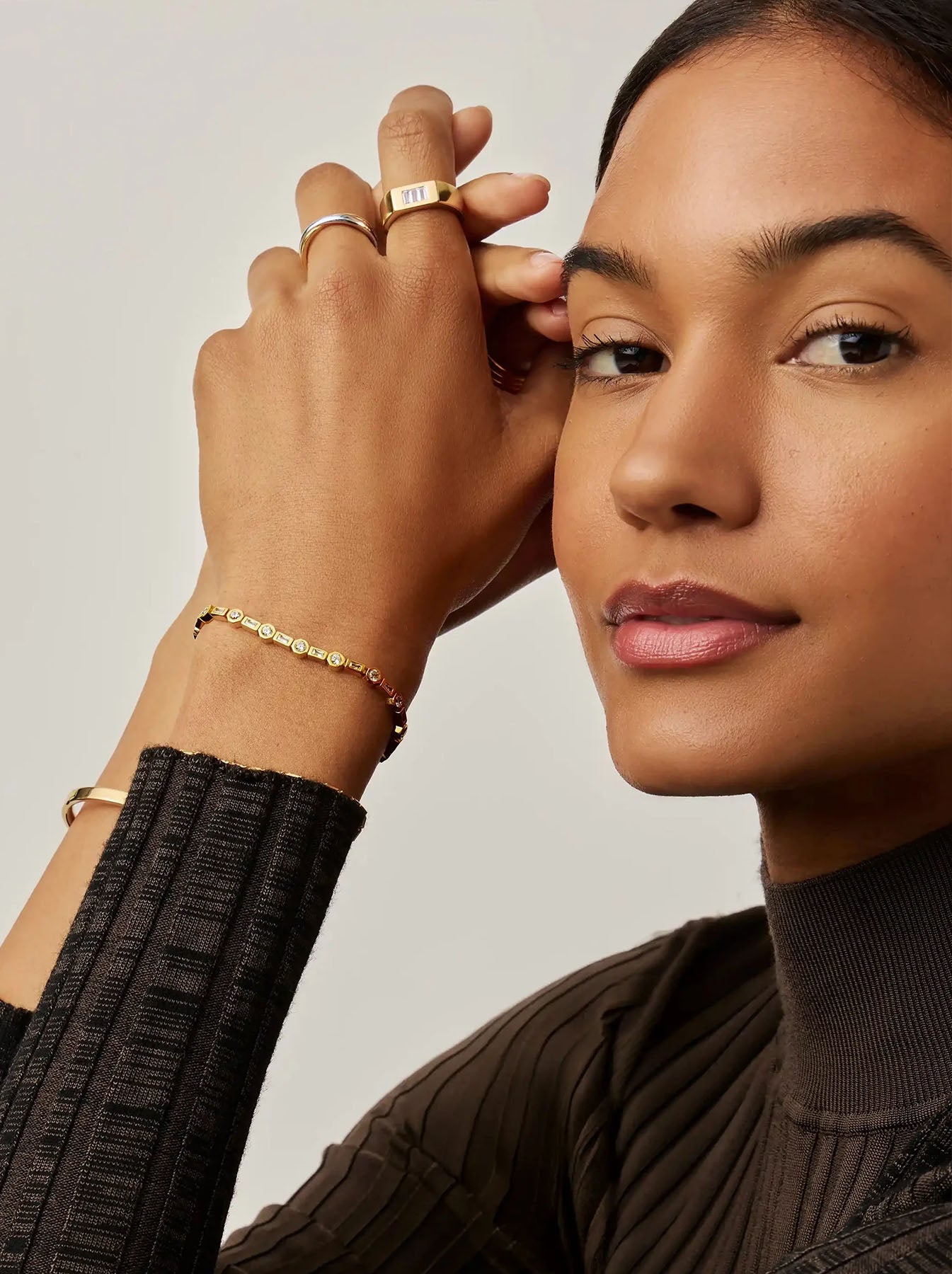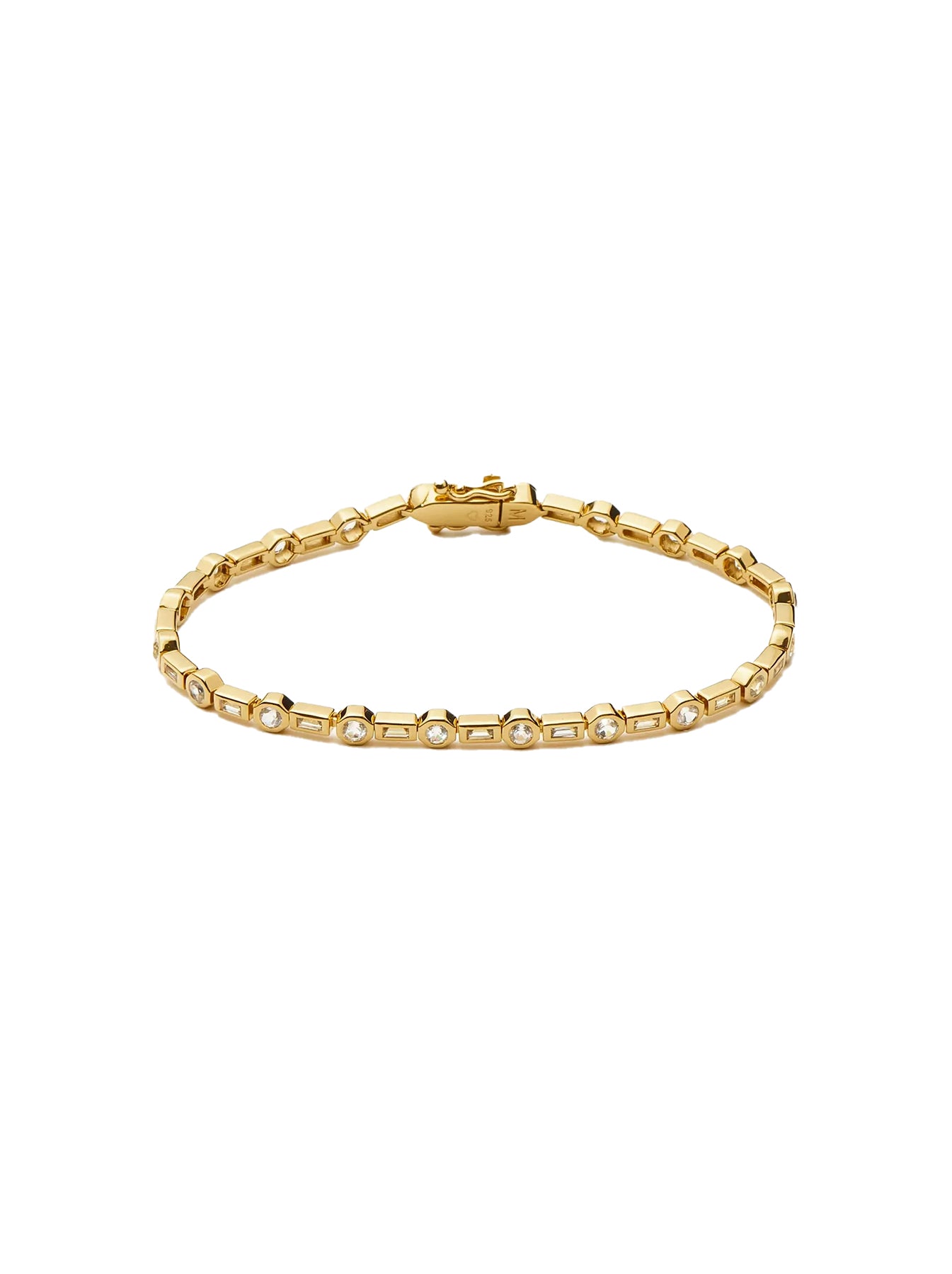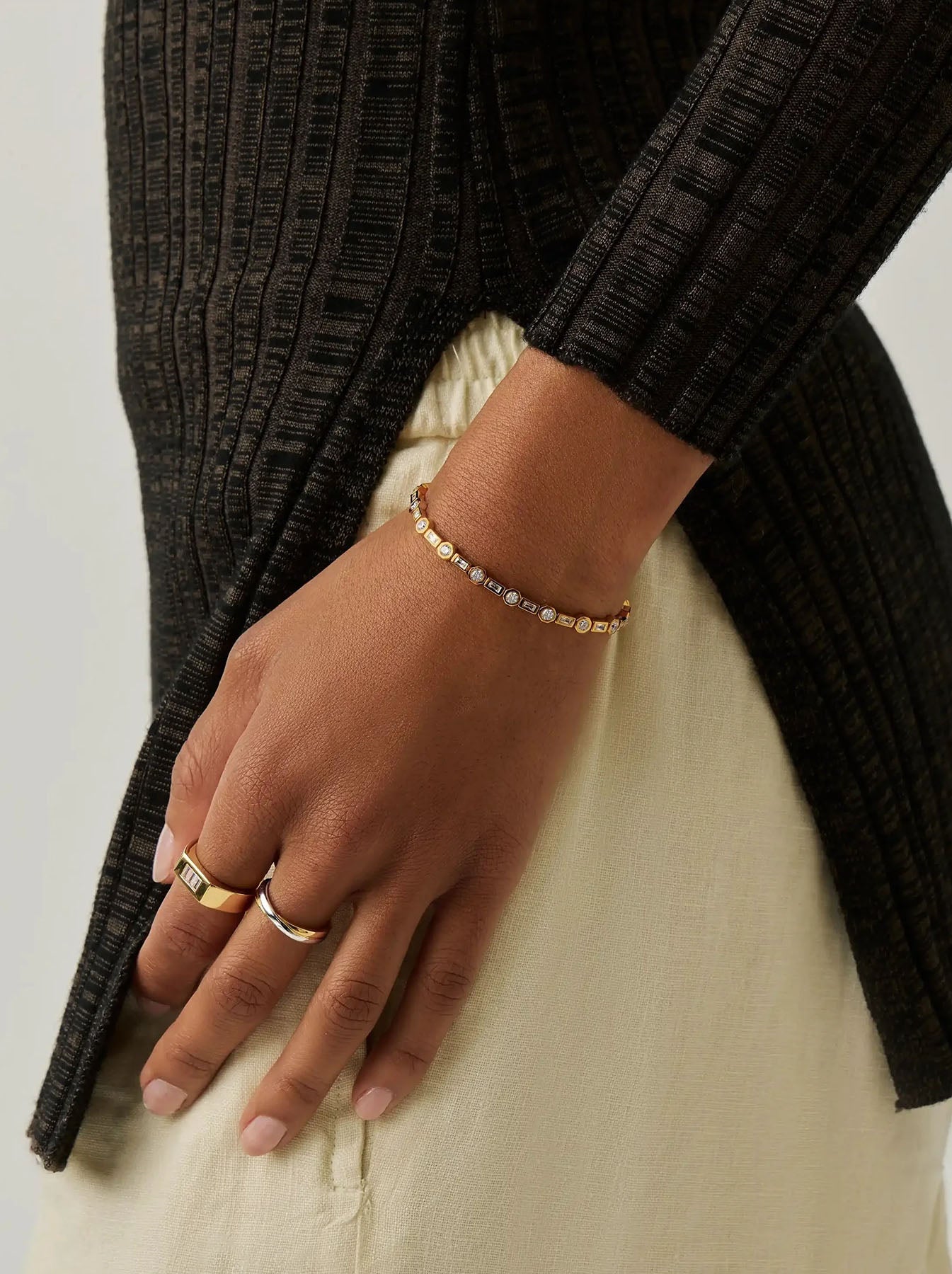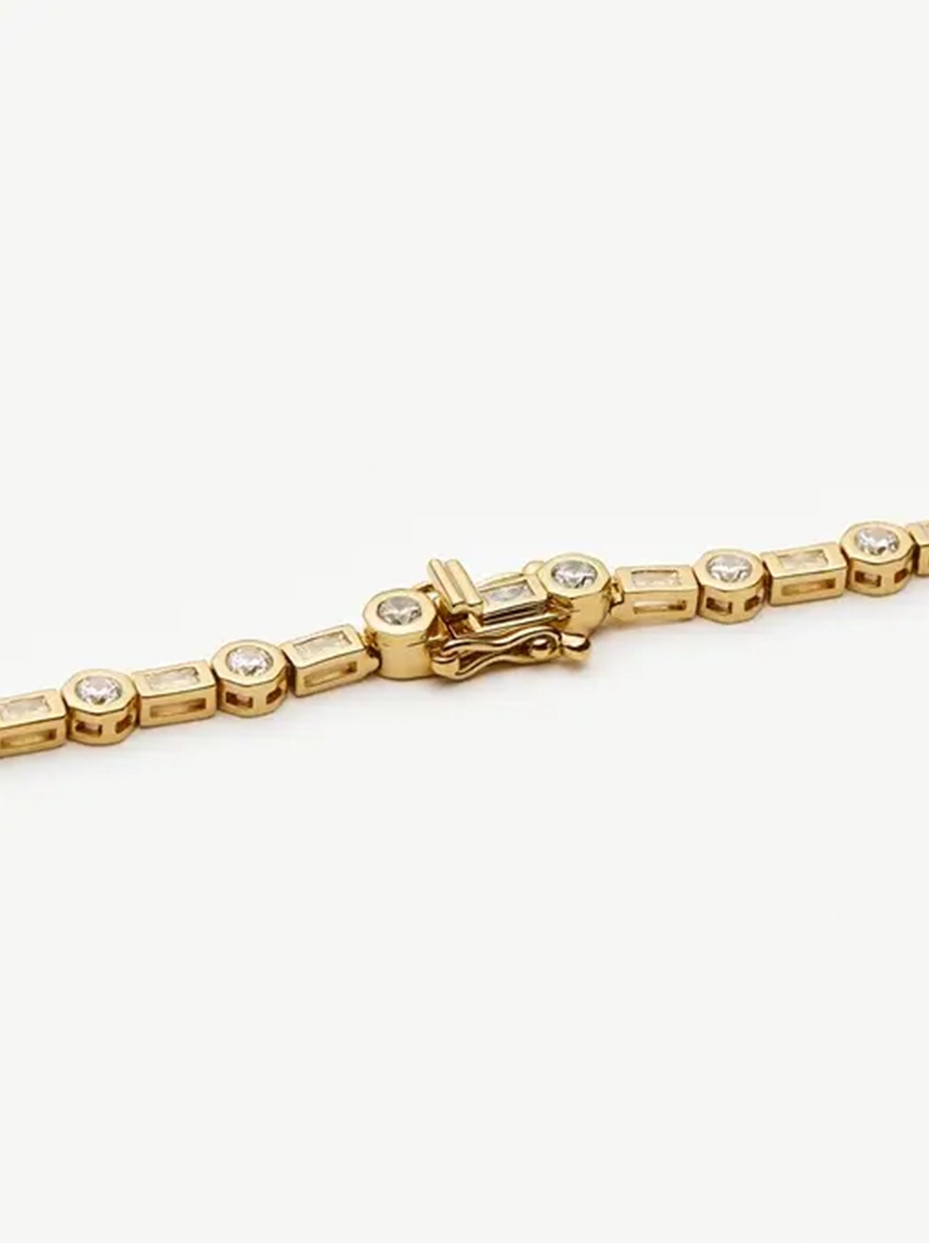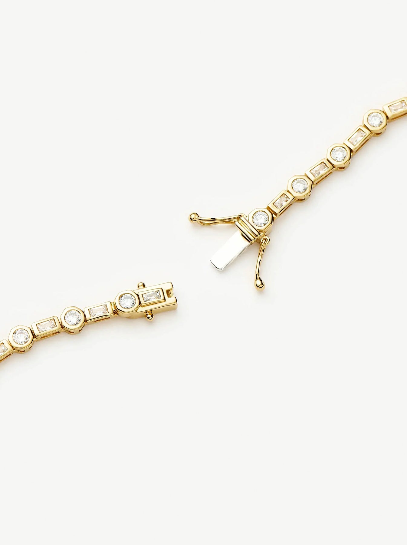 Designed with meticulous detail, Missoma’s Lucy Williams Tennis Bracelet features alternating baguette cubic zirconia in rectangular frames and round stones in hexagonal settings, creating a clean, modern geometric look. A signature tennis clasp offers secure, comfortable wear while adding a refined finish. Pair it with complementary pieces for a polished, layered style or just let it shine on it's own.