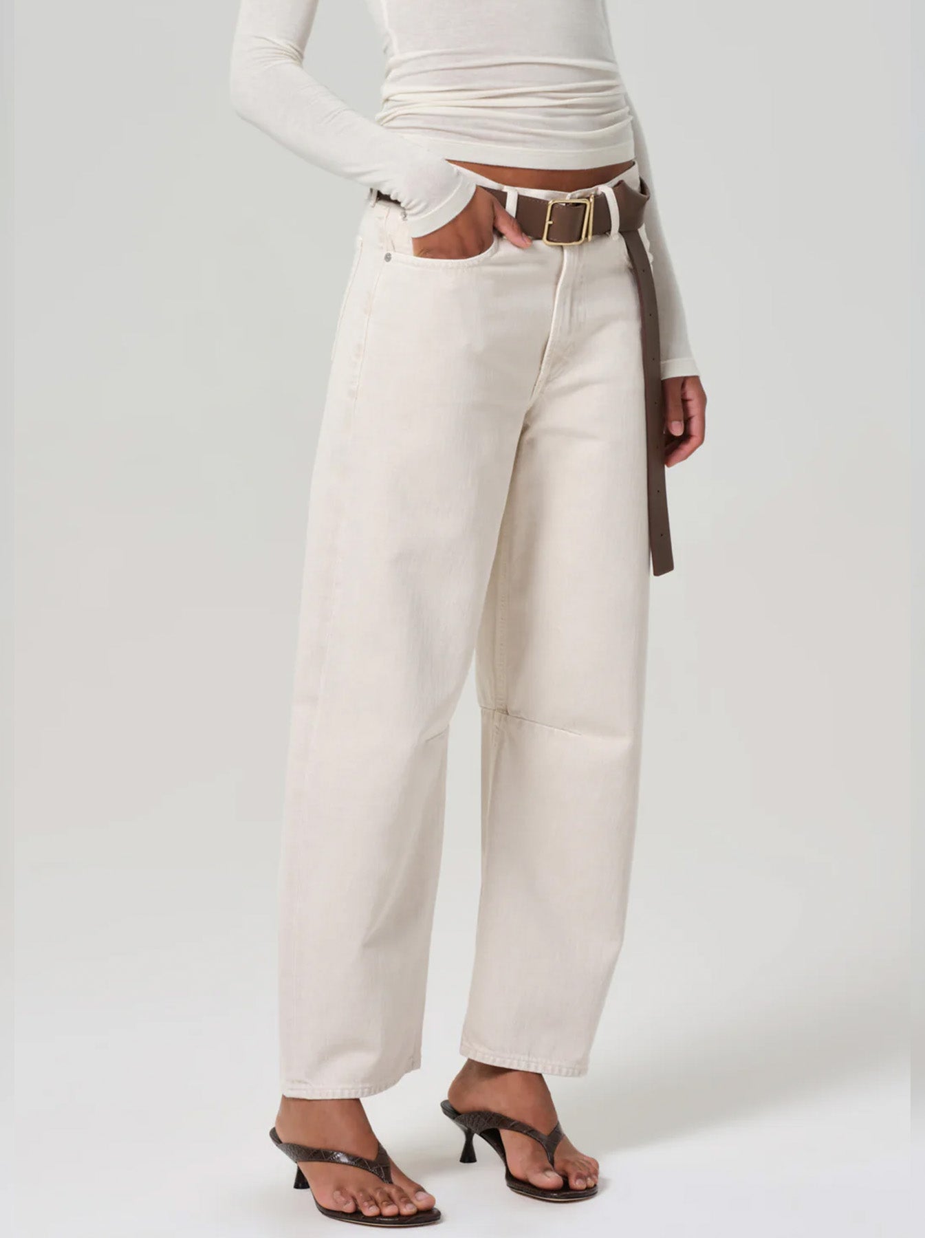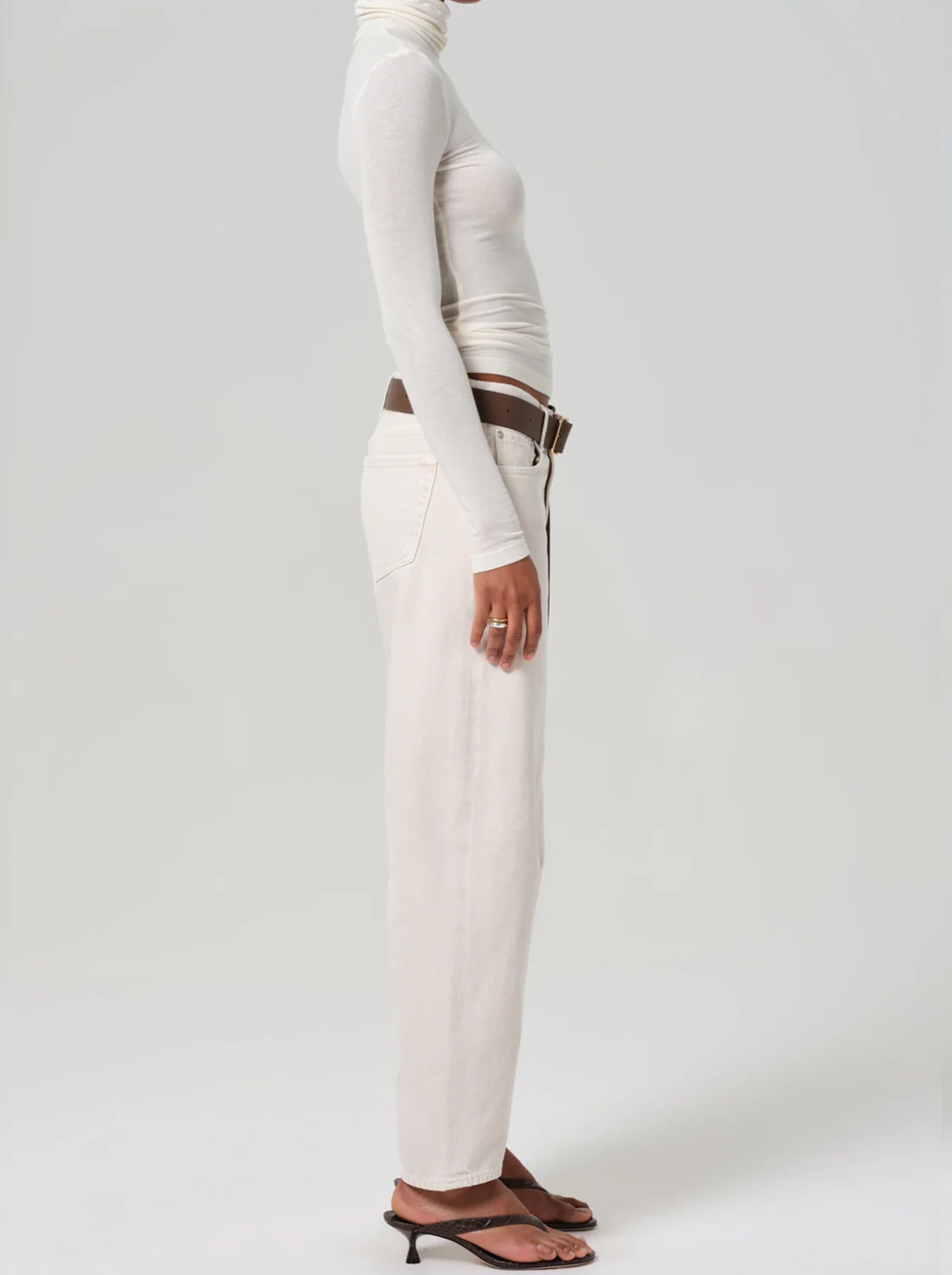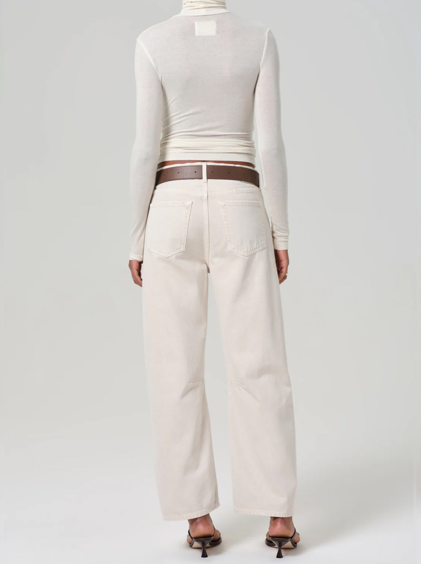 Citizens of Humanity's Miro Relaxed Jean in Almondette delivers quiet sophistication with its refined barrel-leg cut that tapers to the ankle. Crafted from premium cotton for both softness and structure, it offers easy movement while holding its shape. The light wash adds timeless versatility, integrating effortlessly into a curated wardrobe. A cool investment piece, it pairs smoothly with tailored separates and elevated basics for a polished, modern look.