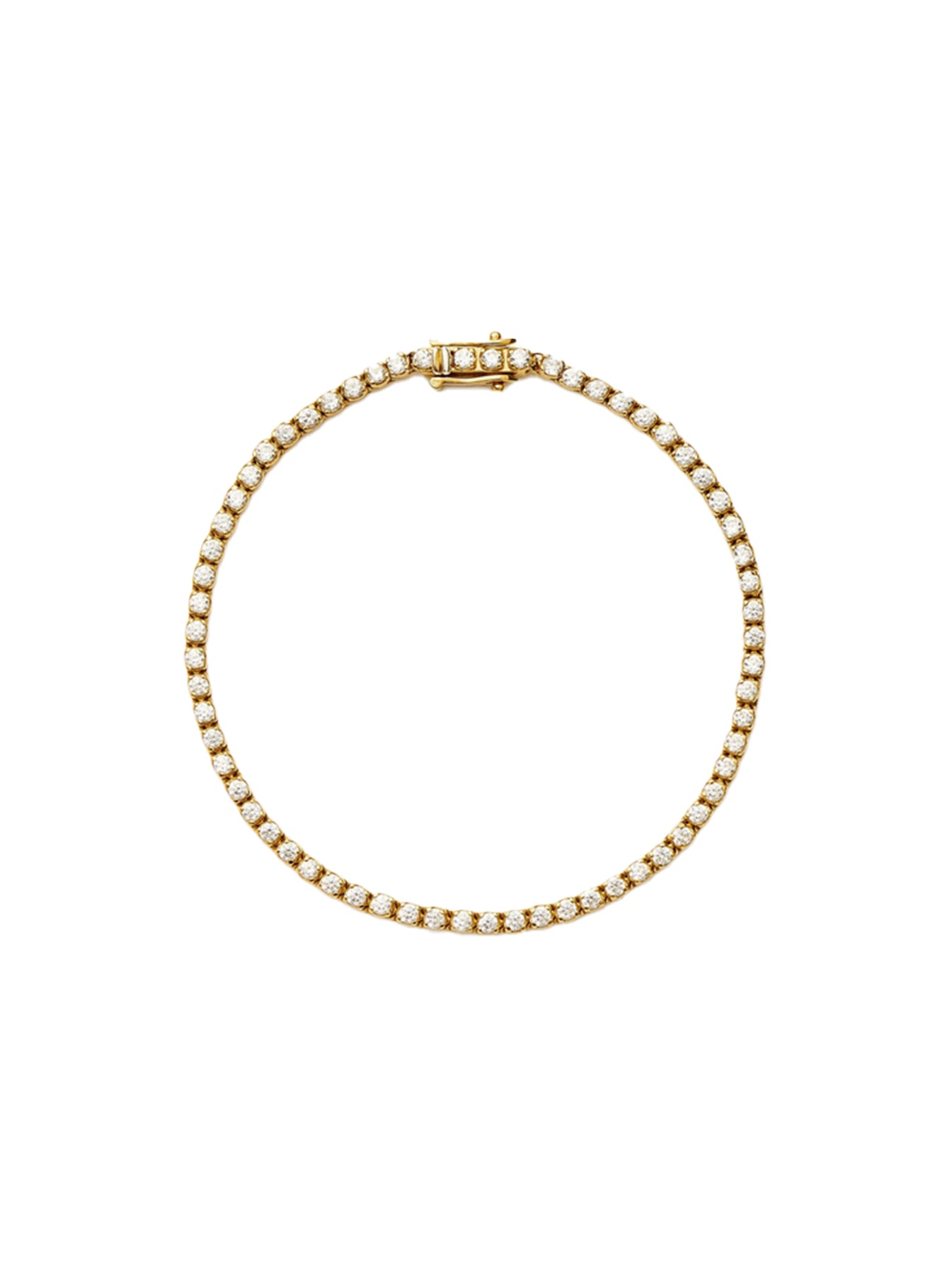 This Classic Tennis Bracelet from Missoma, is the epitome of everyday luxury. Featuring cubic zirconia stones on an 18ct gold vermeil, it has been meticulously handcrafted over a 24 hour process. Wear it alone to let it sparkle or layer it with delicate chains for a stacked look.