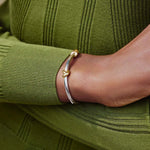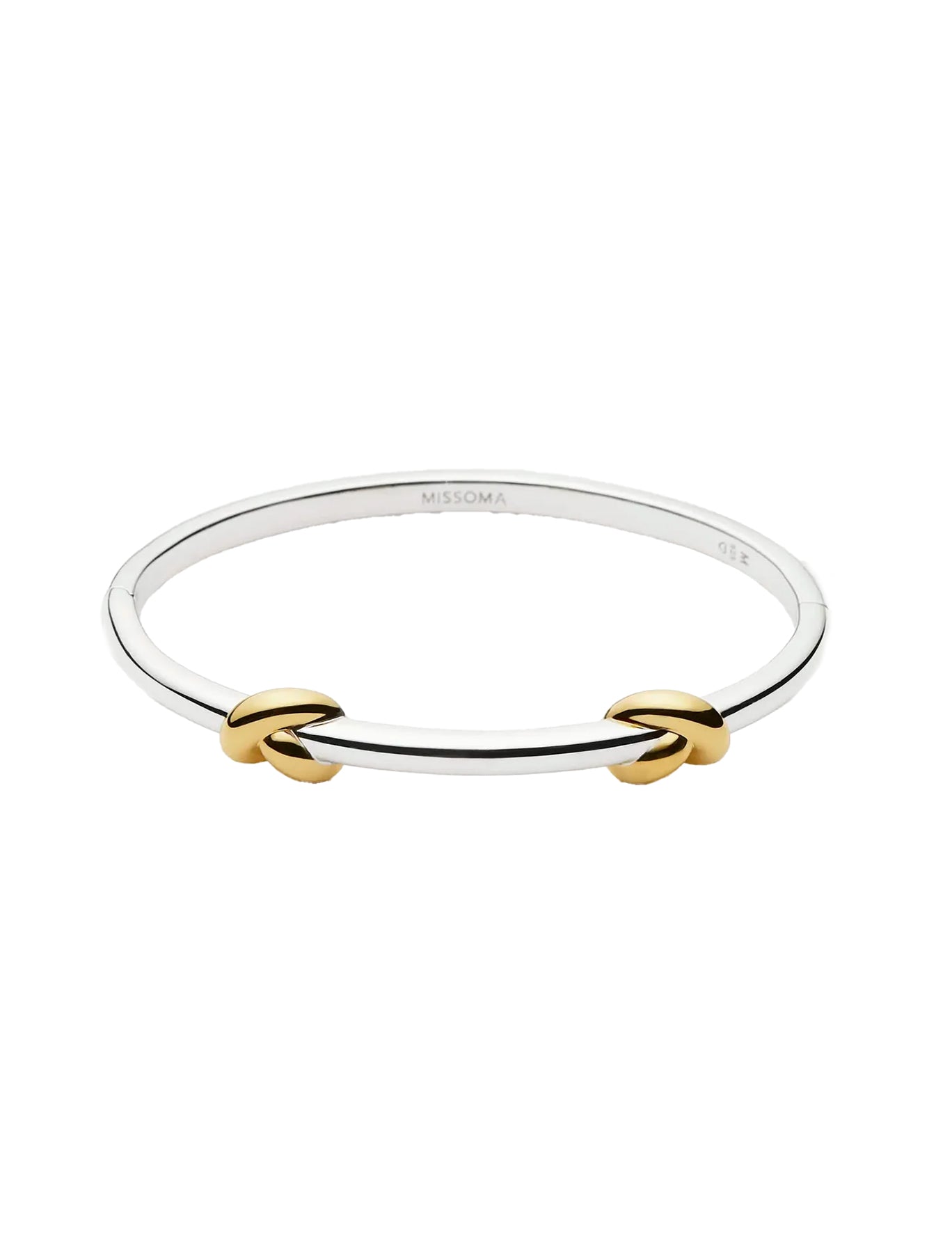 Designed with eye-catching mixed metals the Lucy Williams x Missoma Knot Hinged Bangle features gold knots wrapped around a sleek silver bangle. It’s the perfect piece for wearing solo or stacking with your favourite bracelets for layered impact.