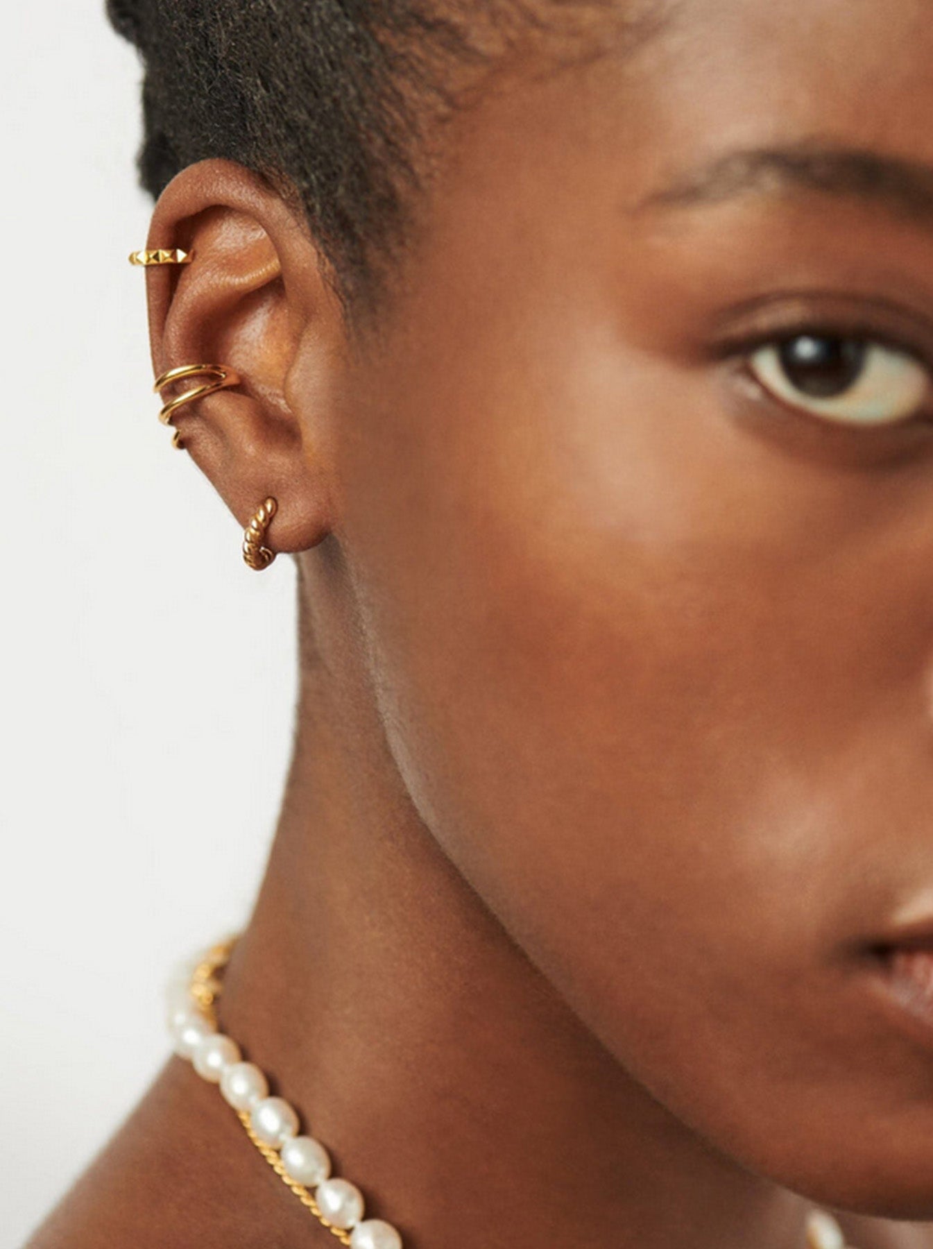 Missoma reimagines their bestselling helical hoops into lightweight sleeper huggies with a modern edge. Featuring a hidden hinge for a seamless finish, these elevated essentials are far from ordinary. Wear them solo for a subtle statement or mix with studs and mini hoops to build your perfect ear stack.