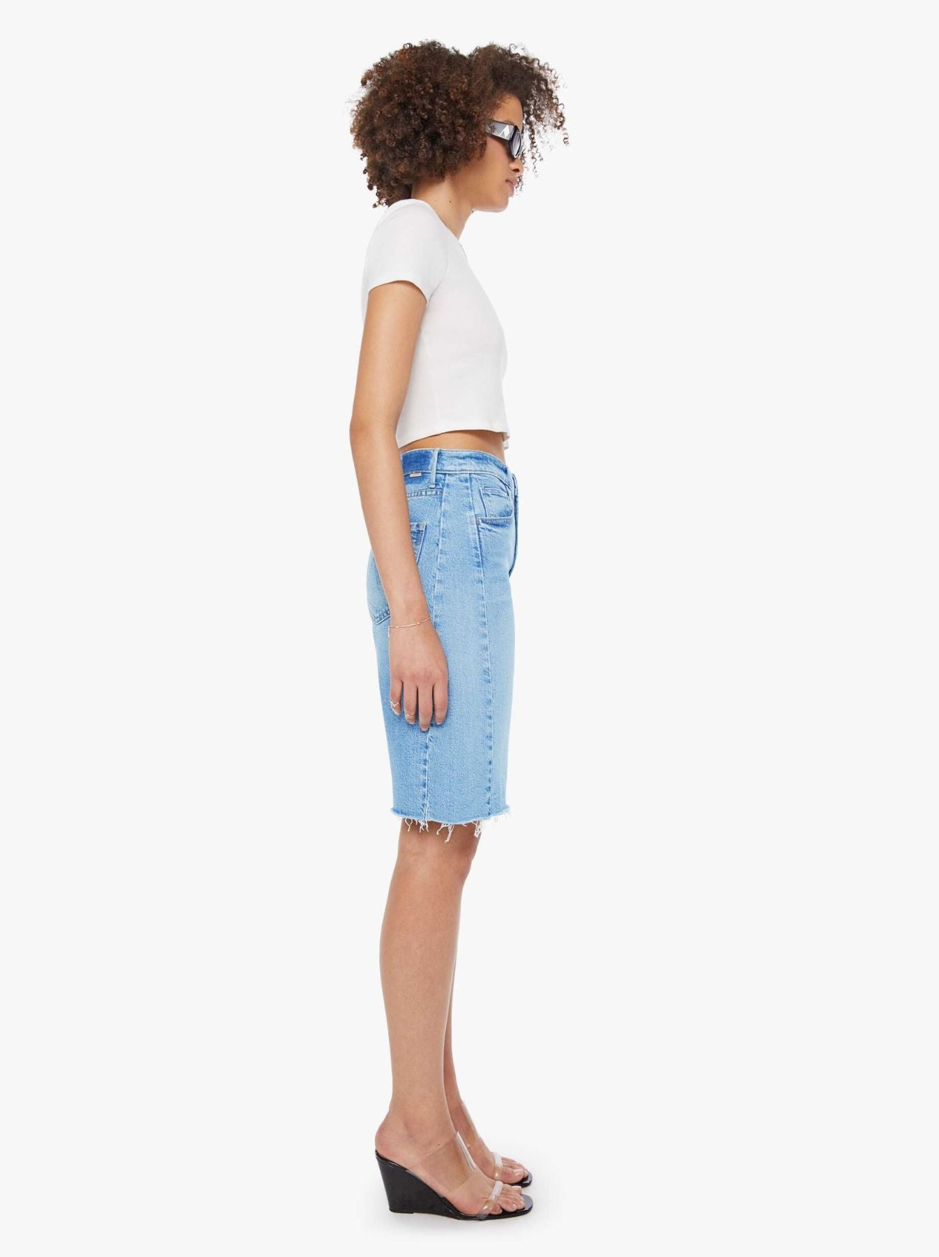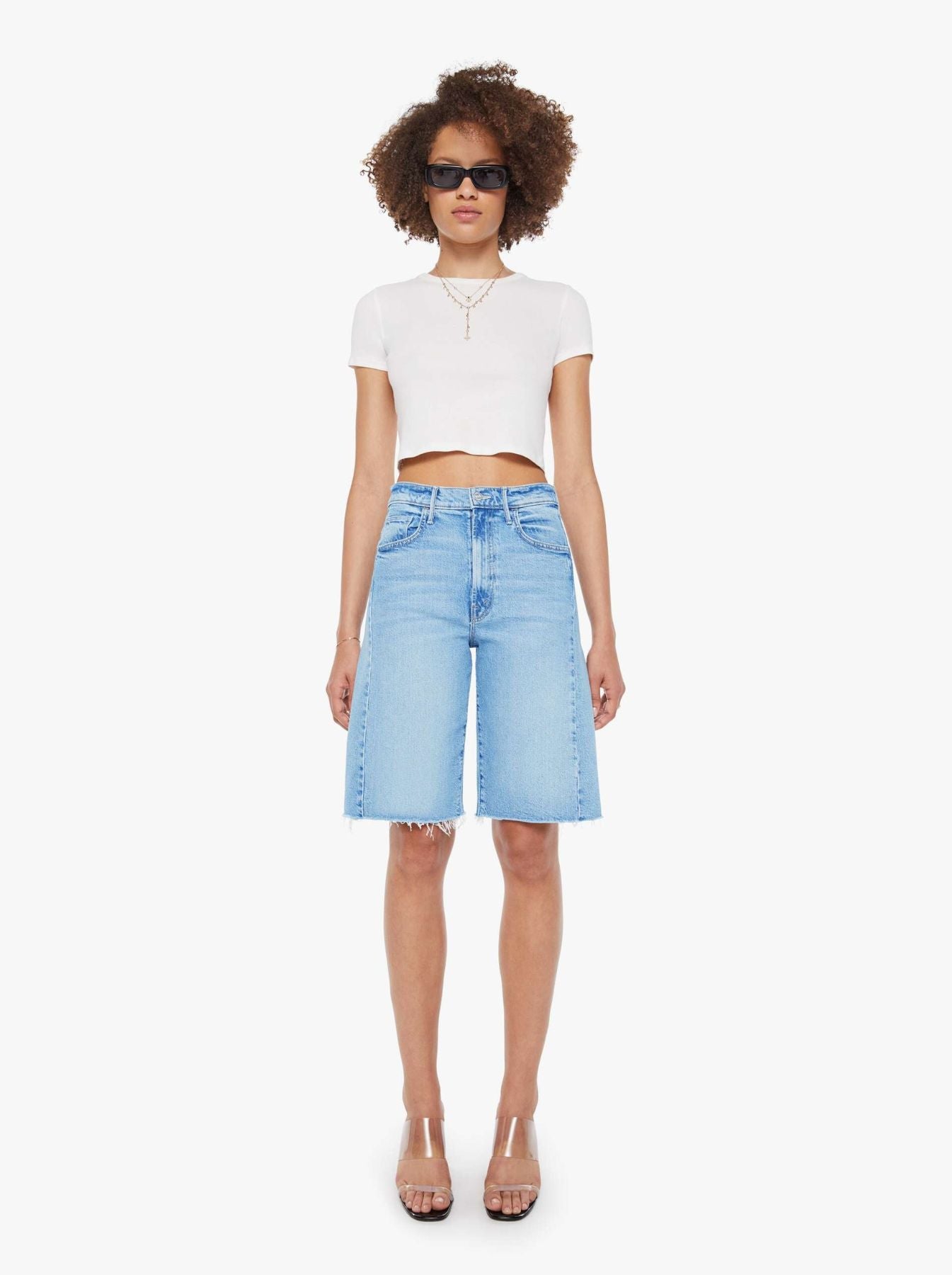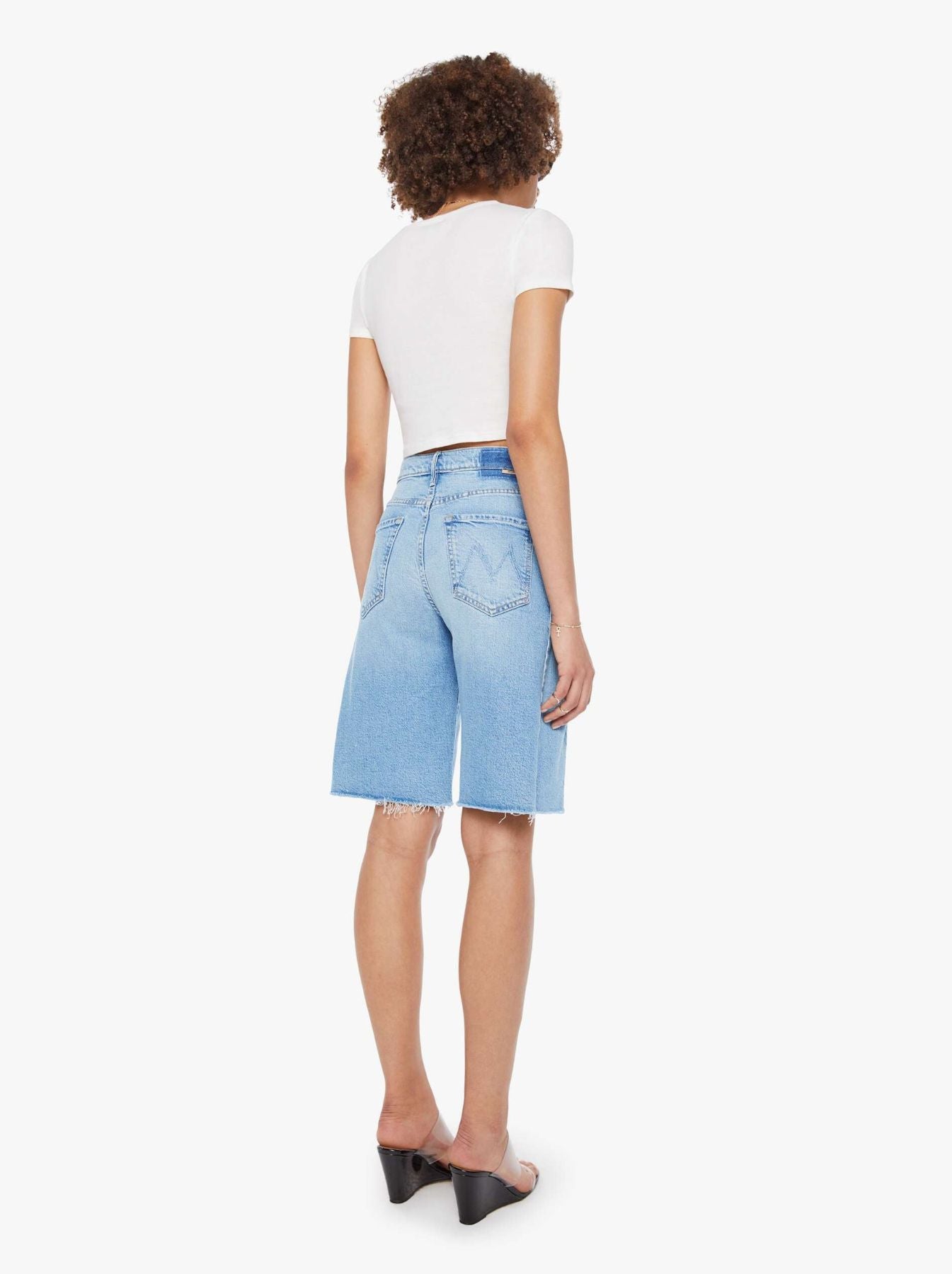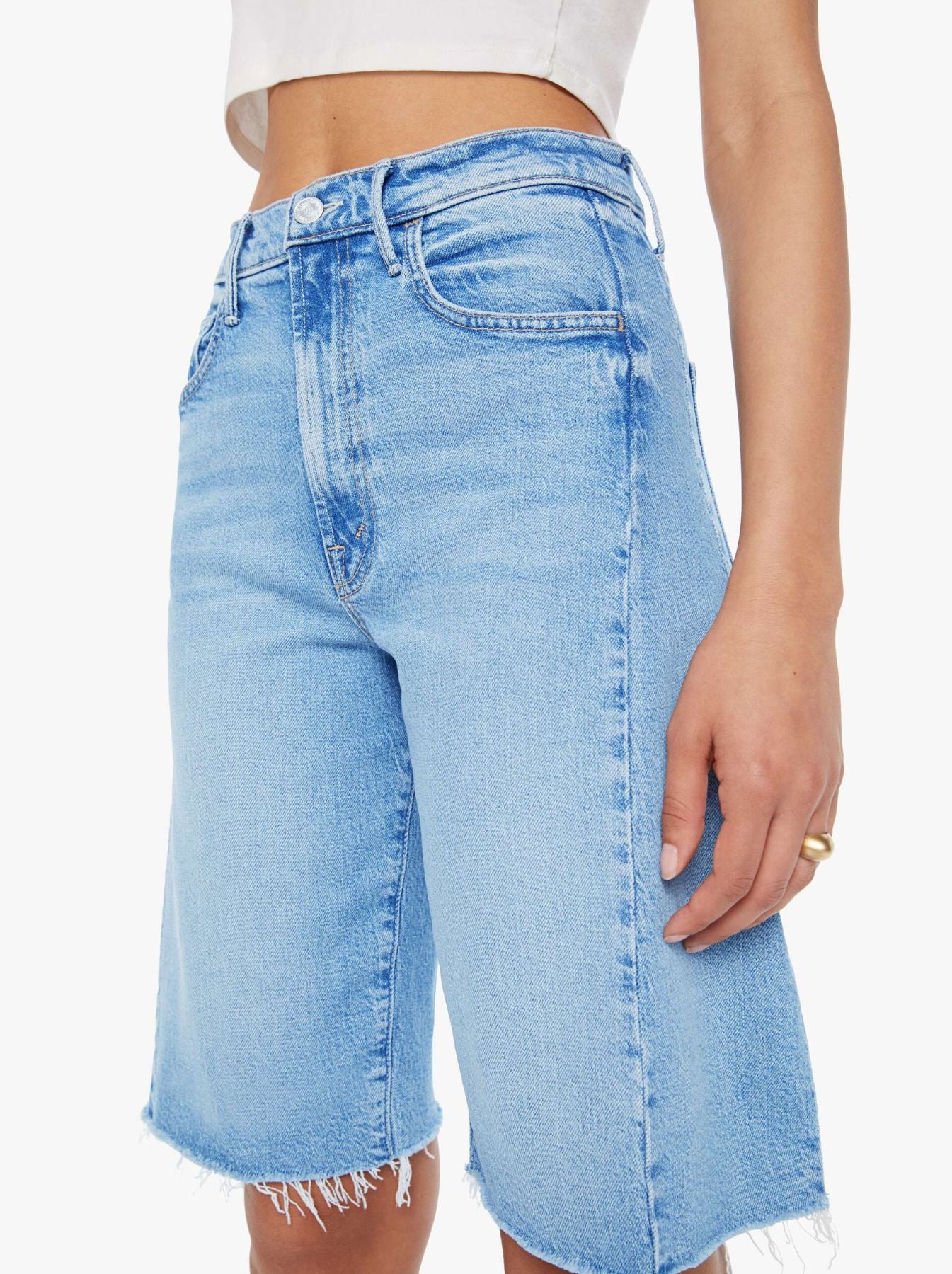 A breezy, wide-leg silhouette defines Mother Denim’s Half-Pipe Bermuda Fray, a denim short designed for effortless summer style. Crafted from soft denim with a slight bit of give, it moves comfortably while maintaining its shape. Frayed hems and subtle wear add a perfectly imperfect, lived-in character to the relaxed fit. Pair with a tucked-in blouse and minimal sandals for a polished, off-duty summer look.