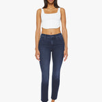The Dazzler Ankle Straight by Mother offers an easy, everyday silhouette with its classic straight-leg cut and figure-hugging stretch denim. Designed with a mid-rise waist, it flatters the hips while providing a relaxed, comfortable fit through the leg. Finished in a timeless medium blue wash with subtle fading and whiskering for a naturally worn-in look. Pair with a cropped cashmere knit and pointed slingback heels for a chic, effortless city ensemble.