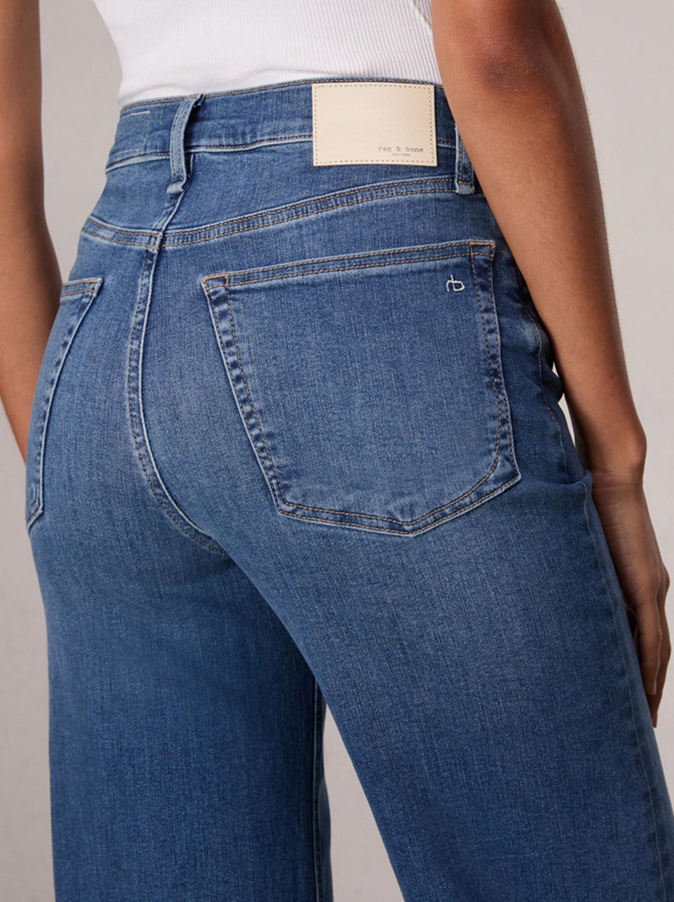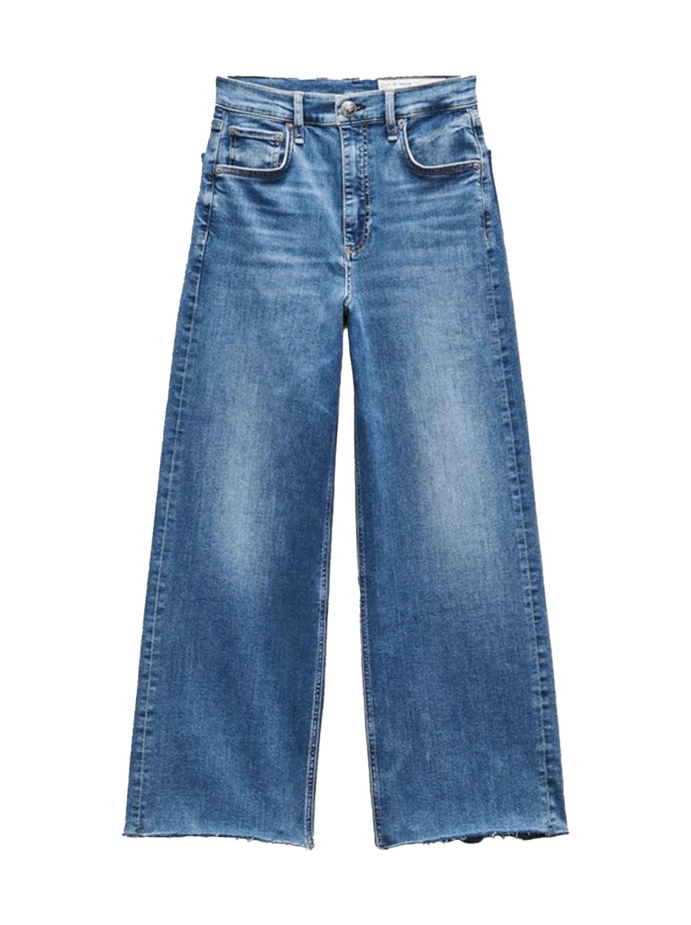 The Epic Andi High-Rise Ankle Wide Jeans from Rag & Bone bring comfort and style together in one easy pair. Made from super-stretchy Epic denim, they’re soft, flexible, and perfect for all-day wear. With a high waist, wide cropped leg and raw hems, they give off a cool, laid-back vibe. The medium indigo wash and subtle fading make them easy to dress up or down—your new go-to jeans for any day of the week.