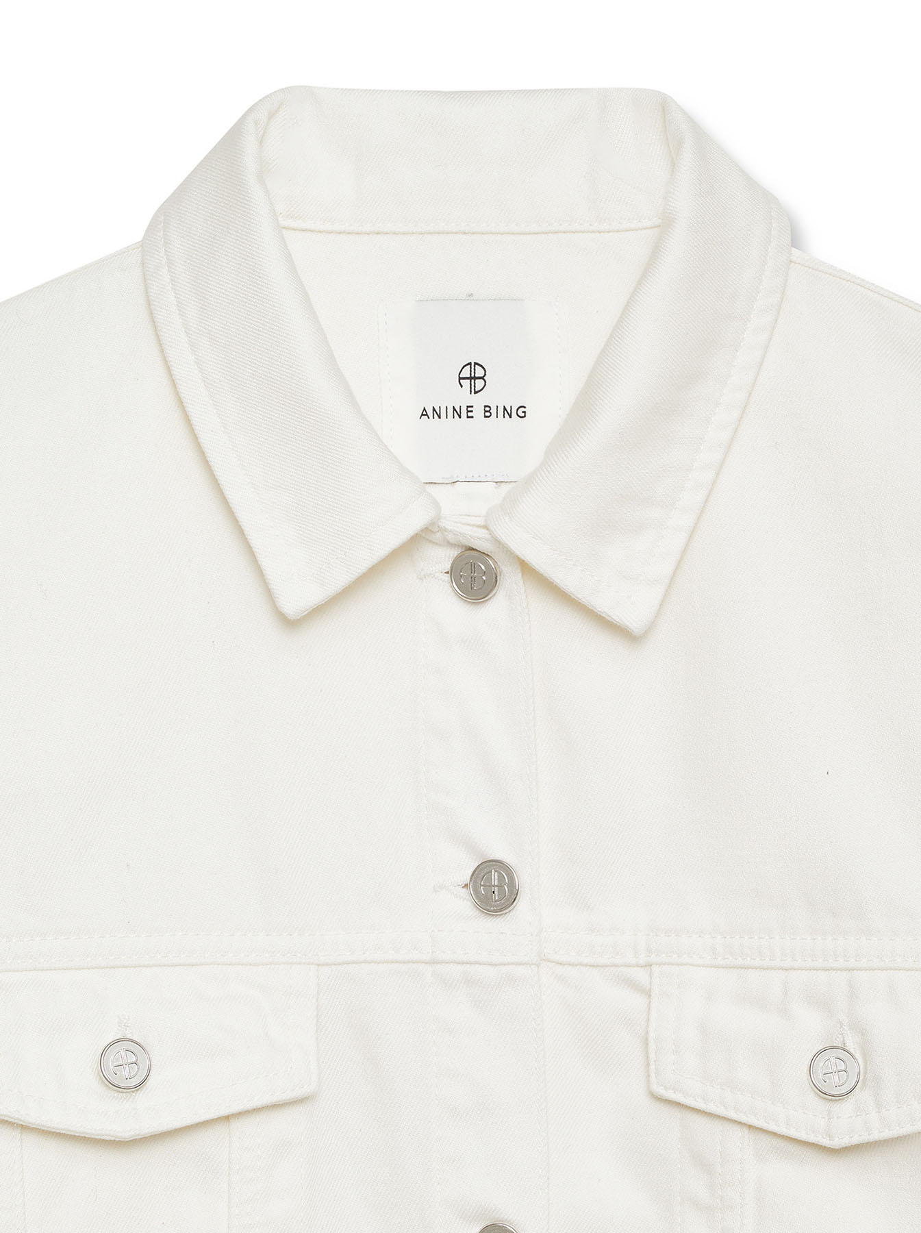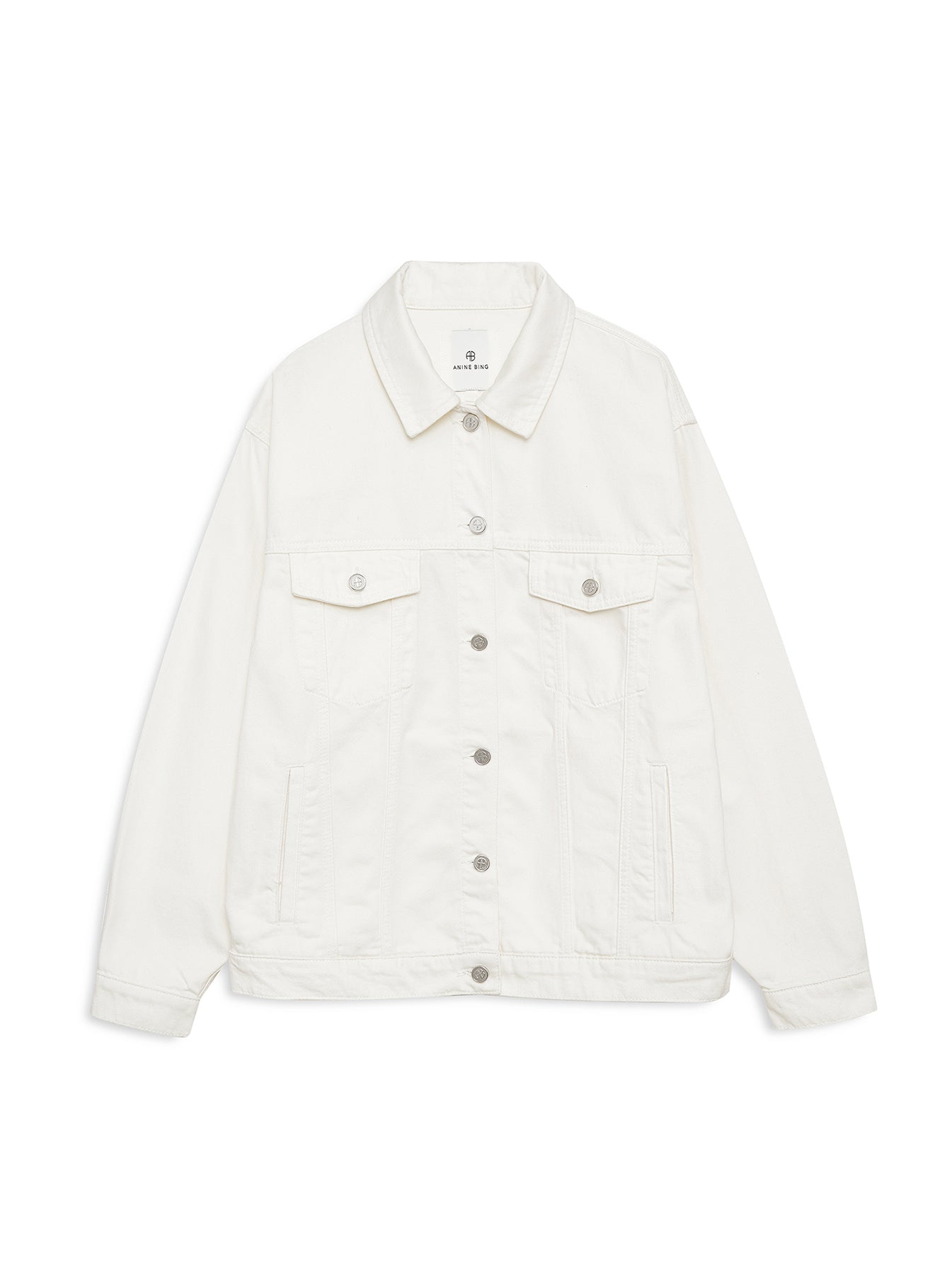 Anine Bing's Rory Jacket is back in this refined cream colourway, perfect for layering on cool summer days. An everyday denim trucker jacket made from a rigid denim with an oversized and boxy fit. This jacket has a timeless appeal that works with other denim or paired with your favourite summer dresses and skirt combos.