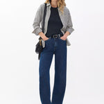 - Details: Long sleeves with railroad stitching, classic bias rib binding at crew neck, centre back seam